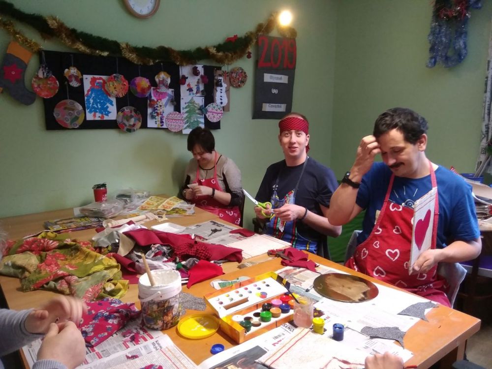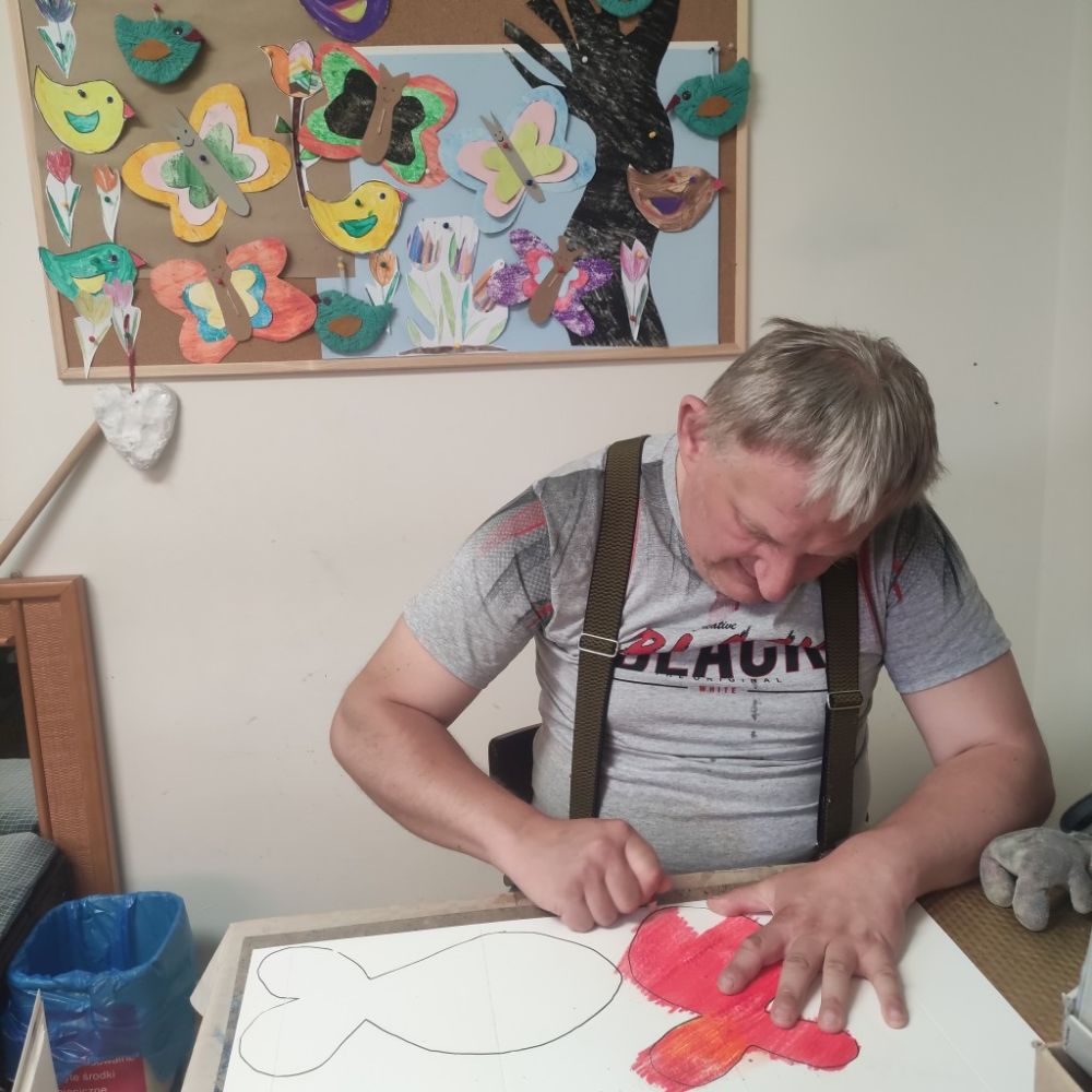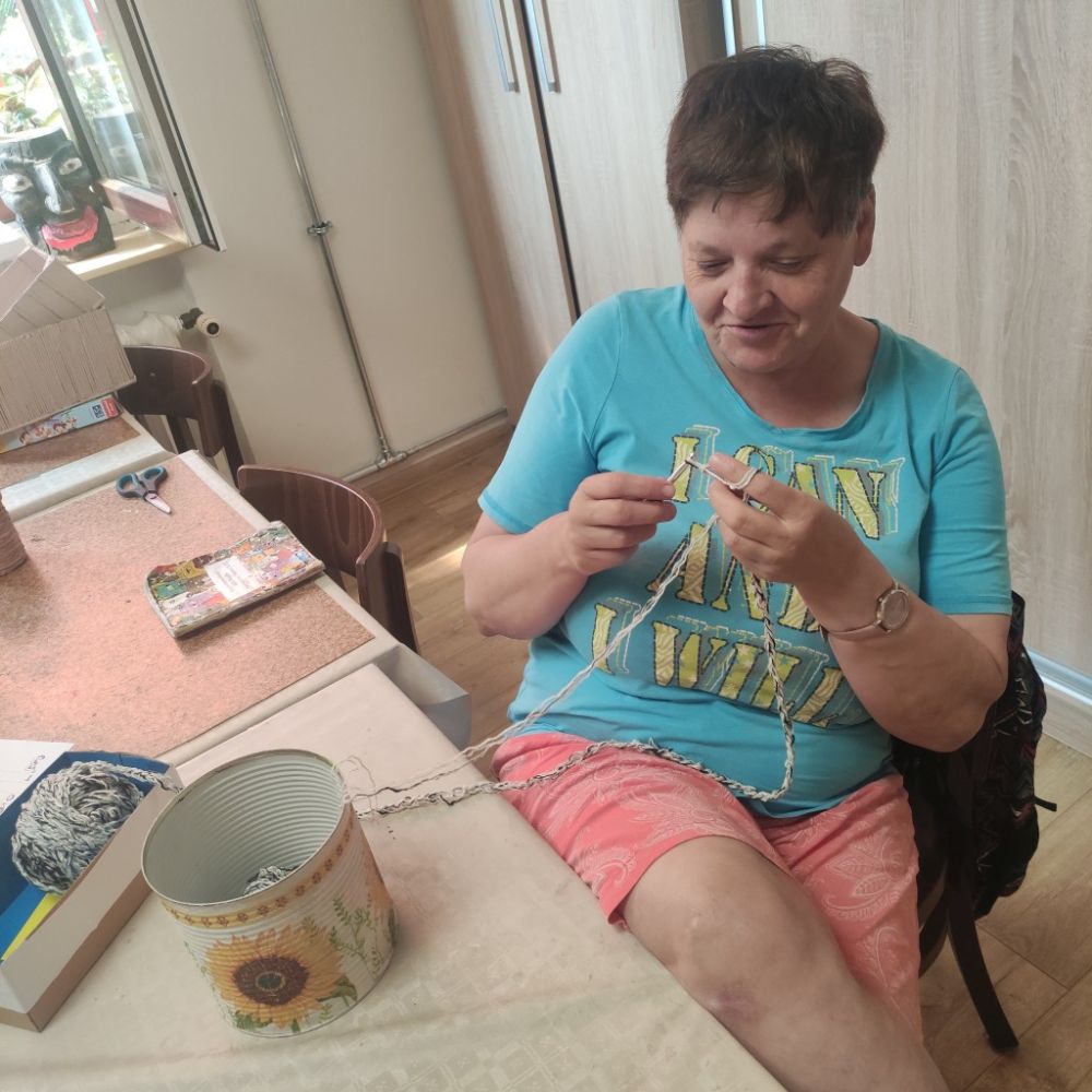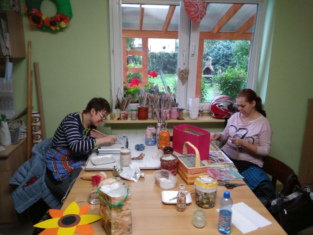 W pracowni rękodzielniczej uczestnicy poznają techniki rysowania, wycinania, wyklejania, przez co kształtuje się ich proces wyobraźni i twórczego myślenia, jak i precyzja ruchów, uwaga oraz orientacja w przestrzeni. Uczestnicy doskonalą sprawność manualną oraz ćwiczą koordynację wzrokowo - ruchową. Wykonywane prace to między innymi – obrazy malowane, rysunki wykonane kredką świecową, prace ze sznurka - sizal, obrazy naklejane wykonane techniką kolażu – z połączenia sznurka, skóry i motywów roślinnych, kartki okolicznościowe i świąteczne wykonywane z kolorowego papieru dekoracyjnego i technicznego oraz prace wykonane techniką decoupage. Uczestnicy zajęć malują, wydzierają, kleją. Tworzą też niepowtarzalne maskotki robione m.in. na szydełku.